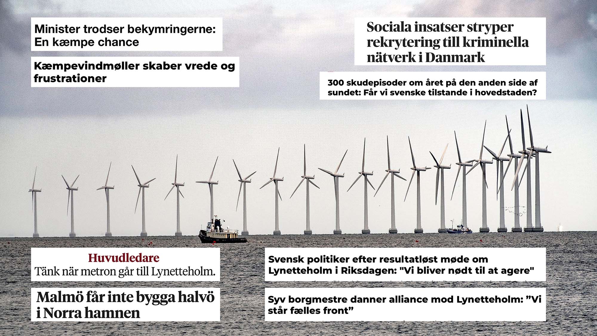 Svenska dödsskjutningar och danska insatser mot gängkriminalitet, fortsatt miljökritik när det gäller bygget av Köpenhamns nya halvö Lynetteholm, oro för nya vindkraftsparker i havet utanför Køge och Falsterbo samt utanför Bornholm. Det är några ämnen som hamnat i fokus för den senaste tidens debatt. News Øresund följer och sammanställer regelbundet aktuella debattartiklar och fördjupande reportage och intervjuer med fokus på Öresundsregionen, Danmark och Sverige.
