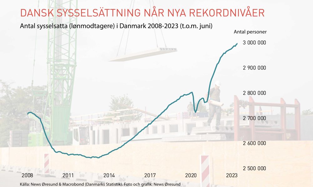 Sysselsättningen på danska sidan Öresund fortsätter att nå nya rekordnivåer trots oroliga ekonomiska tider. Nu närmar sig den danska arbetsmarknaden 3 miljoner sysselsatta. Ökningen i juni...