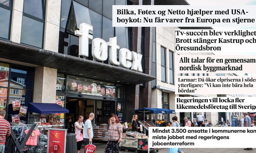 Den danska jobbreformen hotar 3 500 arbetstillfällen på kommunernas jobcenter. Dansk livsmedelsjätte börjar märka ut europeiska varor i butikerna. Den svenska regeringen vill locka fler läkemedelsbolag...