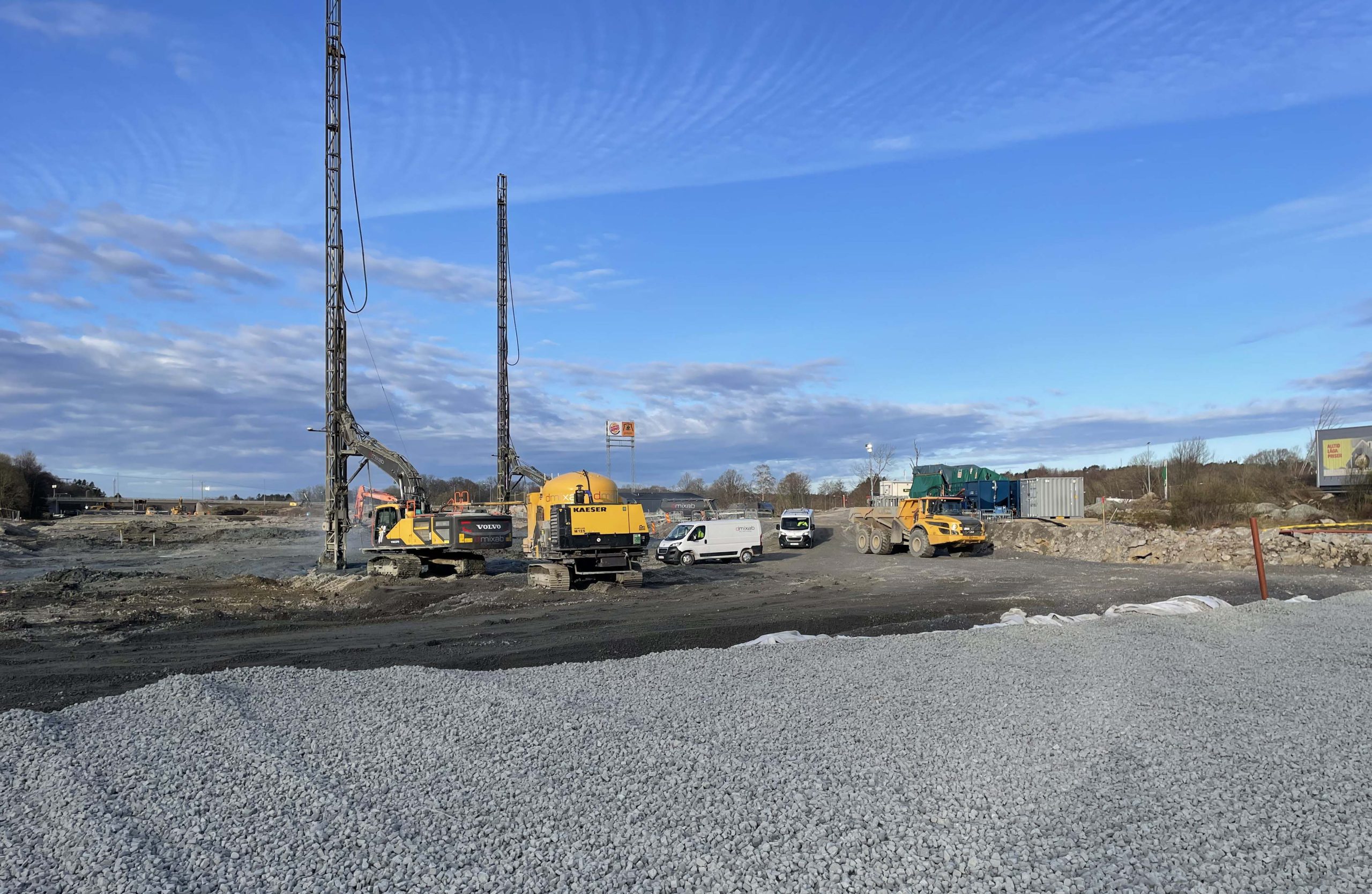 Trafiken kan släppas på tidigare än beräknat på E6 vid Stenungsund som för närvarande byggs upp igen efter skredet som inträffade i september förra året. Foto: Trafikverket