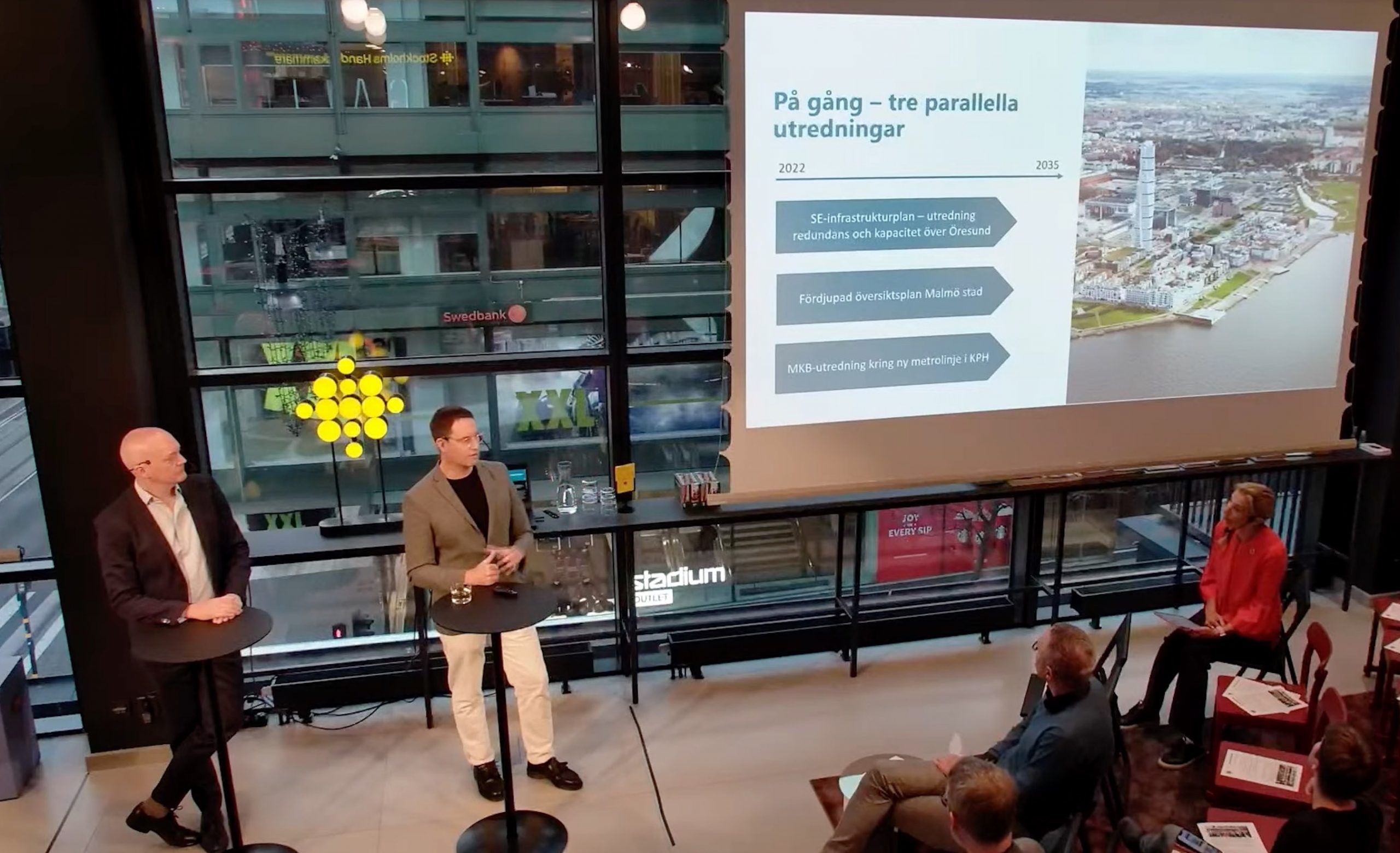Micael Nord, näringslivsdirektör i Malmö, och Marcus Horning, stadsbyggnadsdirektör, vid torsdagens seminarium i Stockholm. Foto: Malmö stad