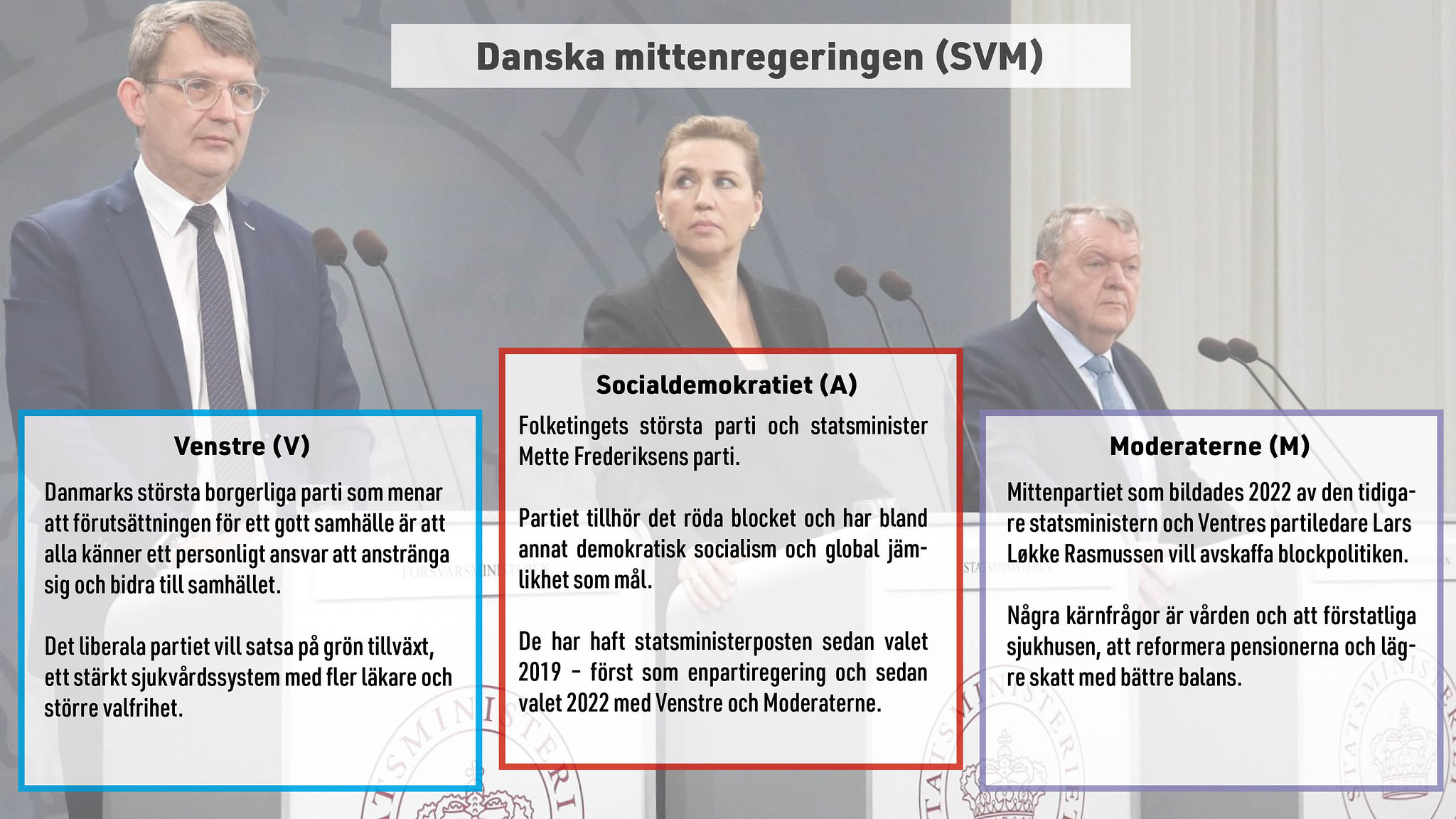 Den blocköverskridande SVM-regeringen bildades 2022 efter en för Danmark rekordlång förhandling – trots att det röda blocket fått en knapp majoritet i Folketinget.
