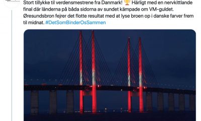 När Danmark och Sverige på söndagen möttes i VM-final i Handboll belystes Öresundsbrons pyloner först med både dansk-svenska färger för att efter den danska vinsten och...