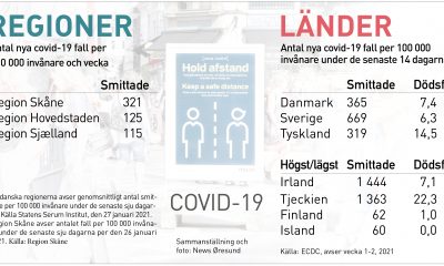 Spridningen av coronavirus börjar avta men från en hög nivå i både Danmark och Sverige med en fortsatt oro för nya mutationer. Antalet nya fall med...