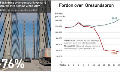 Under vecka 15, påskveckan, var fordonstrafiken över Öresundsbron 76 procent lägre jämfört med samma vecka förra året. Helgdagarna gör dock jämförelsen mera osäker. Bland annat minskade...