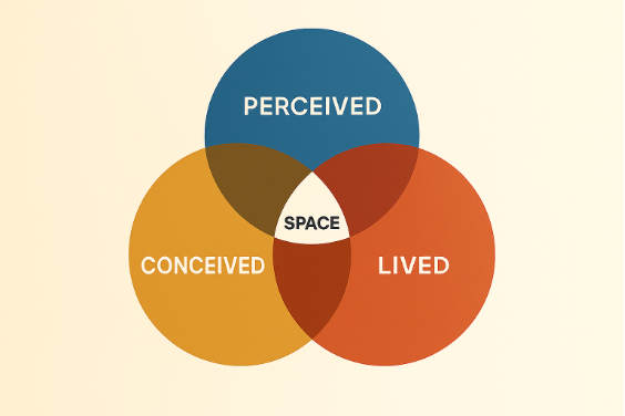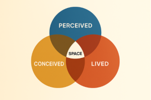 Hon avslutar presentationen med att relatera campusutveckling till teorin om de tre rummen, en av den franska sociologen och filosofen, Henri Lefebvres, mest kända verk.