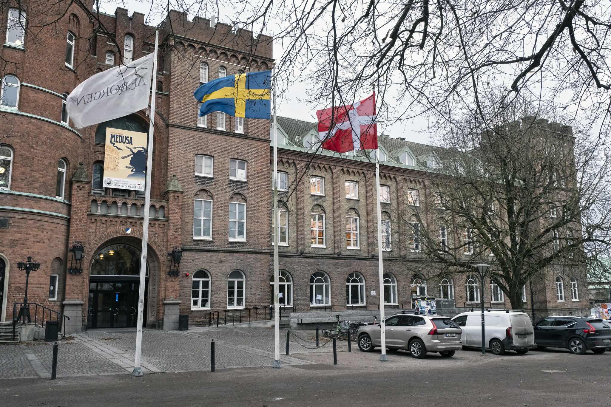 AF Borgen i Lund hade hissat den danska flaggan när drottning Margrethe anlände till Lund för att utnämnas till hedersledamot vid universitetet. Foto: News Øresund – Johan Wessman