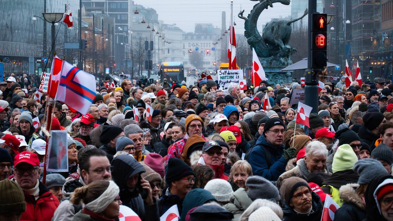 Under parollen ”Grönland tillhör grönlänningarna” demonstrerade tusentals personer i Danmark och i Grönlands huvudstad Nuuk lördagen den 17 januari. Bakgrunden är president Trumps ambitioner att ta över världens största ö, som är en autonom del av Danmark.