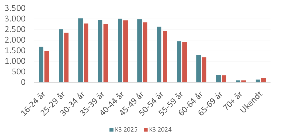 Alla åldersgrupper bland pendlare över Öresund ökade under tredje kvartalet jämfört med samma kvartal 2024. Det var dock de unga mellan 16 och 24 år som ökade mest, med 14 procent, följt av pendlare i åldersgrupperna 30–34, 50–54 och 60–69 år som ökade med 9 procent.